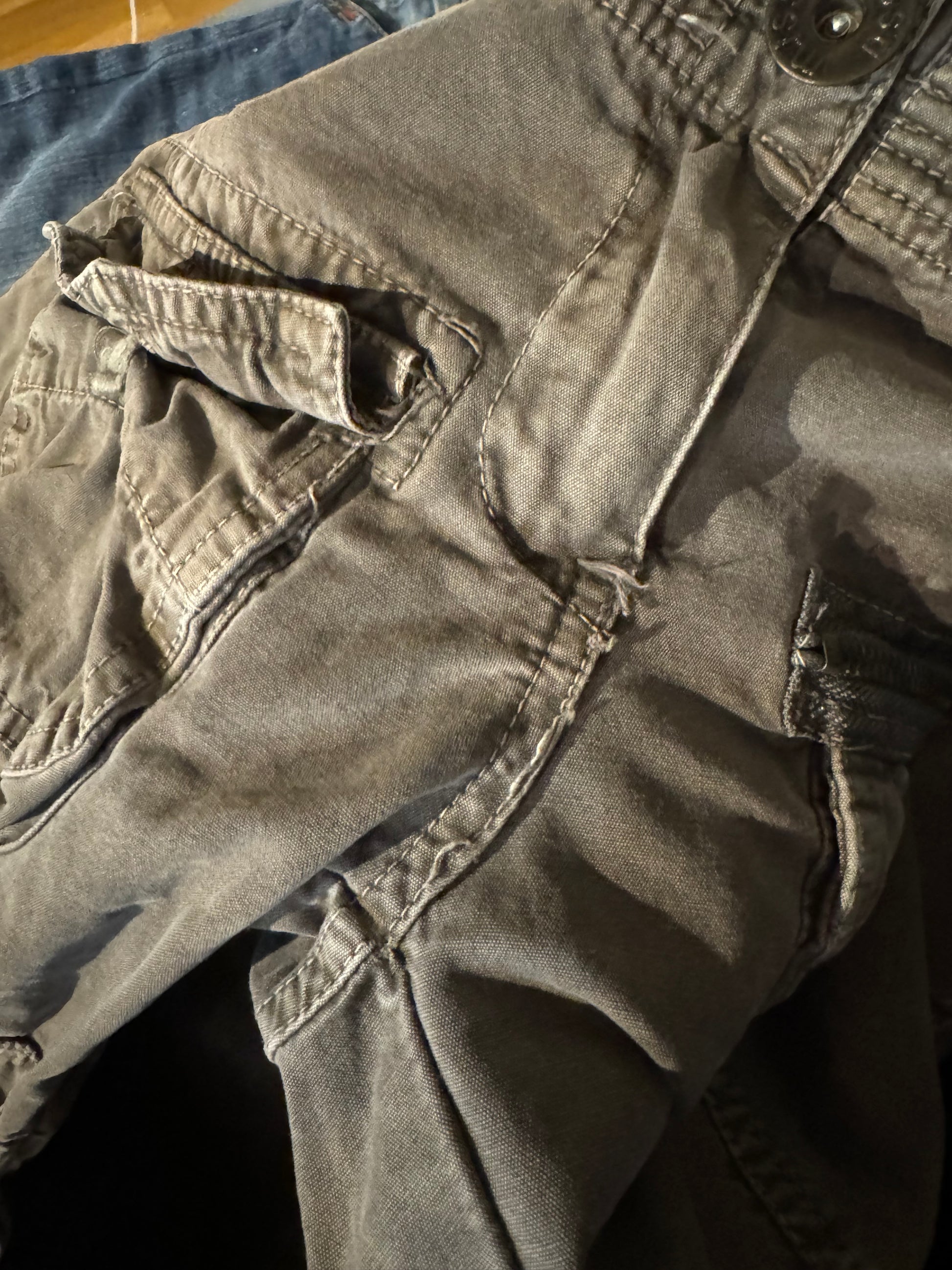 Skick/defekt: Bra, en liten slitning på ena benet samt några stygn har gått upp vid gylfen.