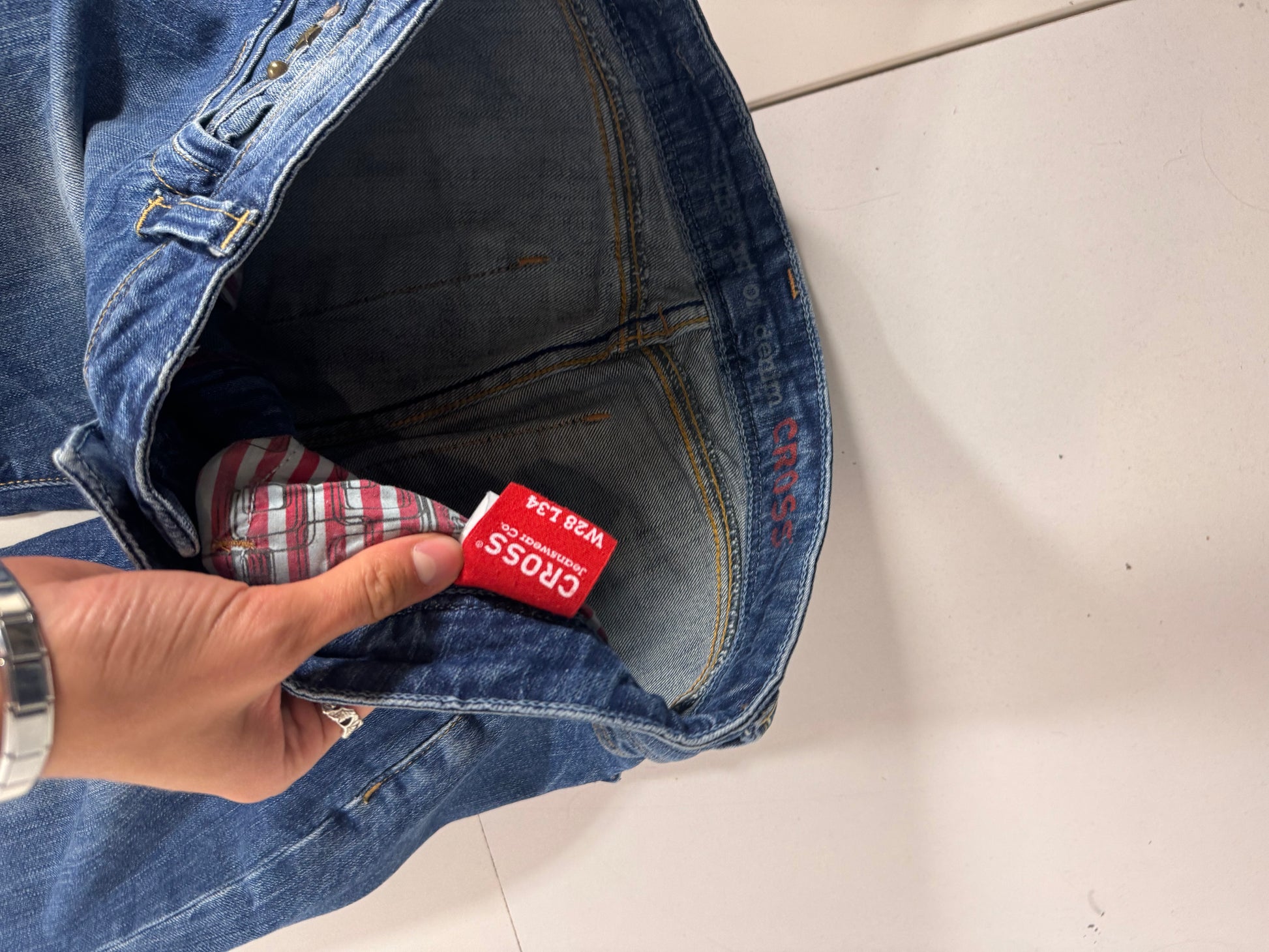 Storlek på etikett: W28/L34