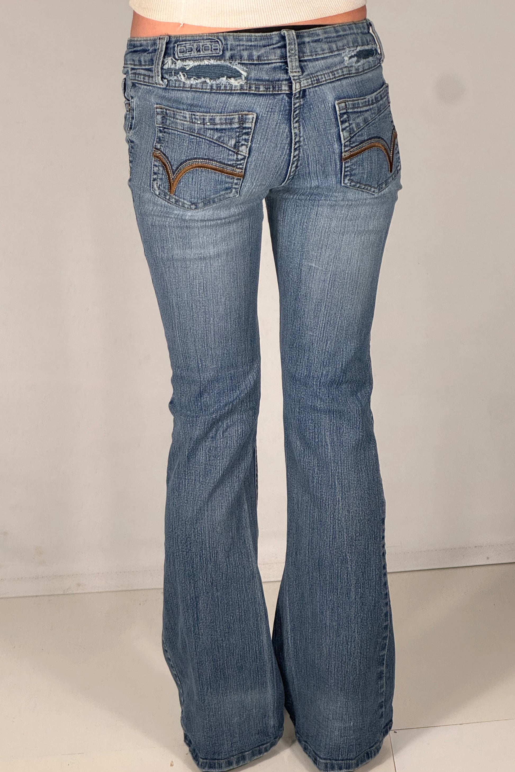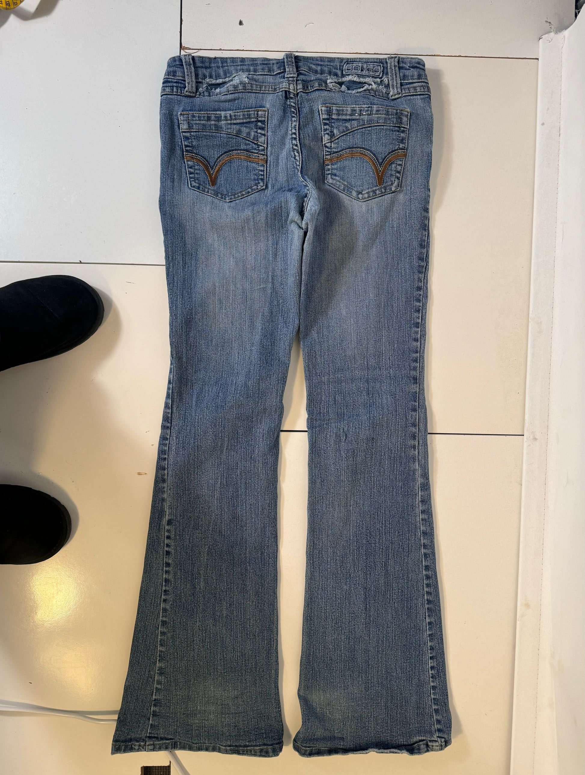 Skick/defekt: Bra, sliten bak och lagning vid linningen/upptill