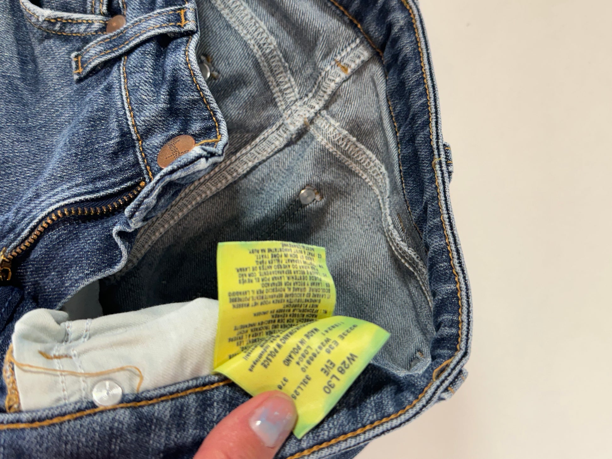 Storlek på etikett: W28/L30